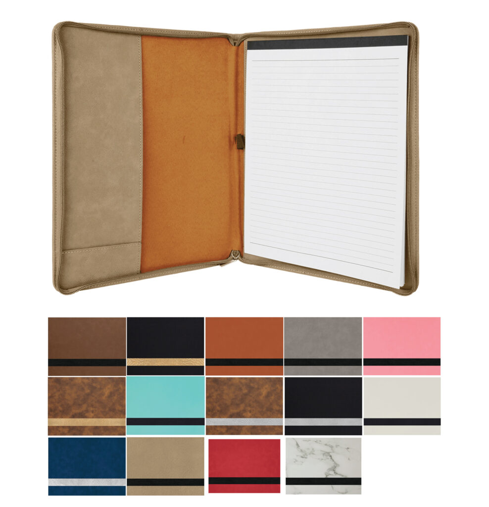 Large Zippered Leatherette Portfolio with Lined Notepad