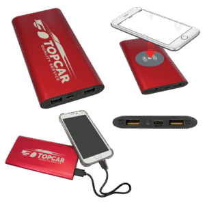800mAh Power Bank & Wireless Anodized Aluminum Charger with USB-C Cord